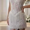 Lace Fringe Corset Mini Dress: Strapless Bridal Gown